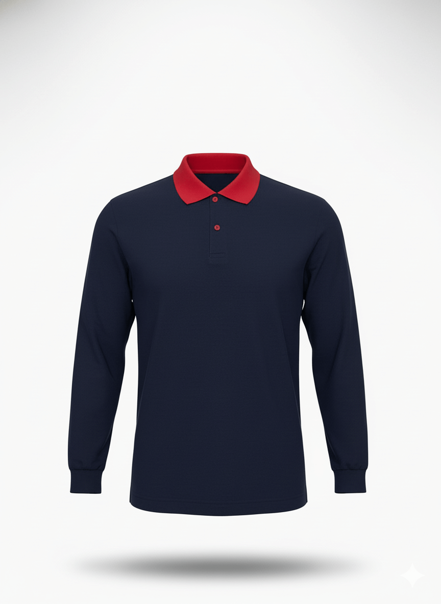 Élégance et Confort : Polo professionnel à manches longues Coton Marine avec col Rouge contrastant. Idéal pour l’image de marque, le personnel d’encadrement, le service ou la logistique légère. Coupe confortable et résistant.