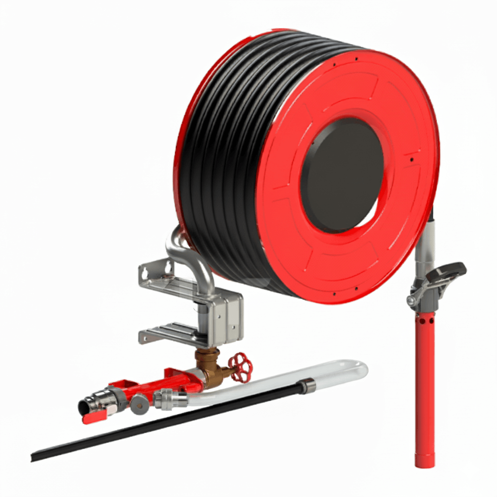 - Conception Modulaire POK : Intègre le même dévidoir tournant-pivotant robuste que le RIA POK, en acier avec revêtement époxy-polyester, garantissant durabilité et facilité de déploiement.